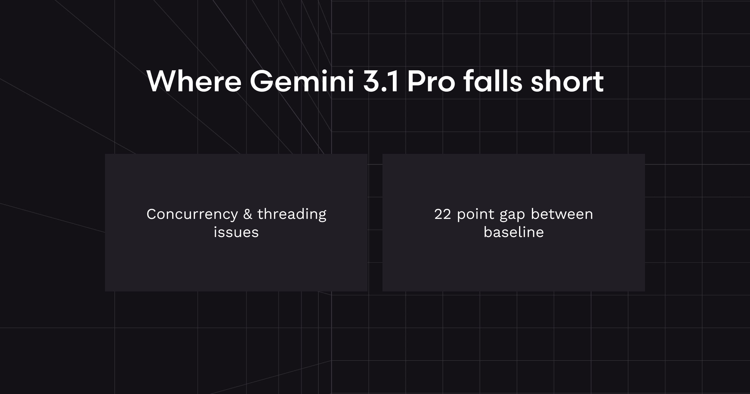 Concurrency and threading (56% vs 78% on 9 EPs): This is the critical gap. Nine error patterns covered concurrency bugs, lock misuse, timing dependencies, race conditions, livelock. Gemini detected 5; Baseline detected 7. The 22-point gap on the dominant category in this dataset is what drives the coverage difference.