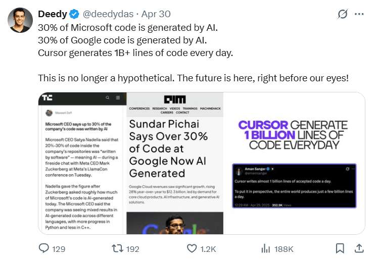 In April, Microsoft and Google announced that AI is generating 30% of the code at their companies. That indicates that AI coding tools have entered a new phase. They’ve become a significant part of engineering workflows – even at large, enterprise companies.