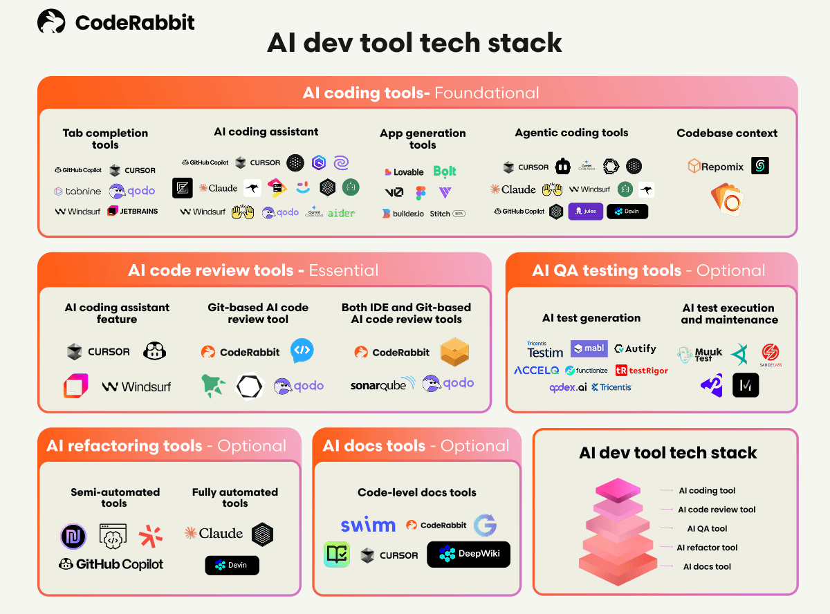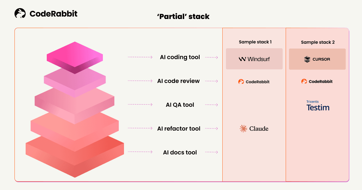 The AI dev tool stacks we’re seeing our customers adopt are a layered set of AI tools that support every stage of the software development lifecycle.