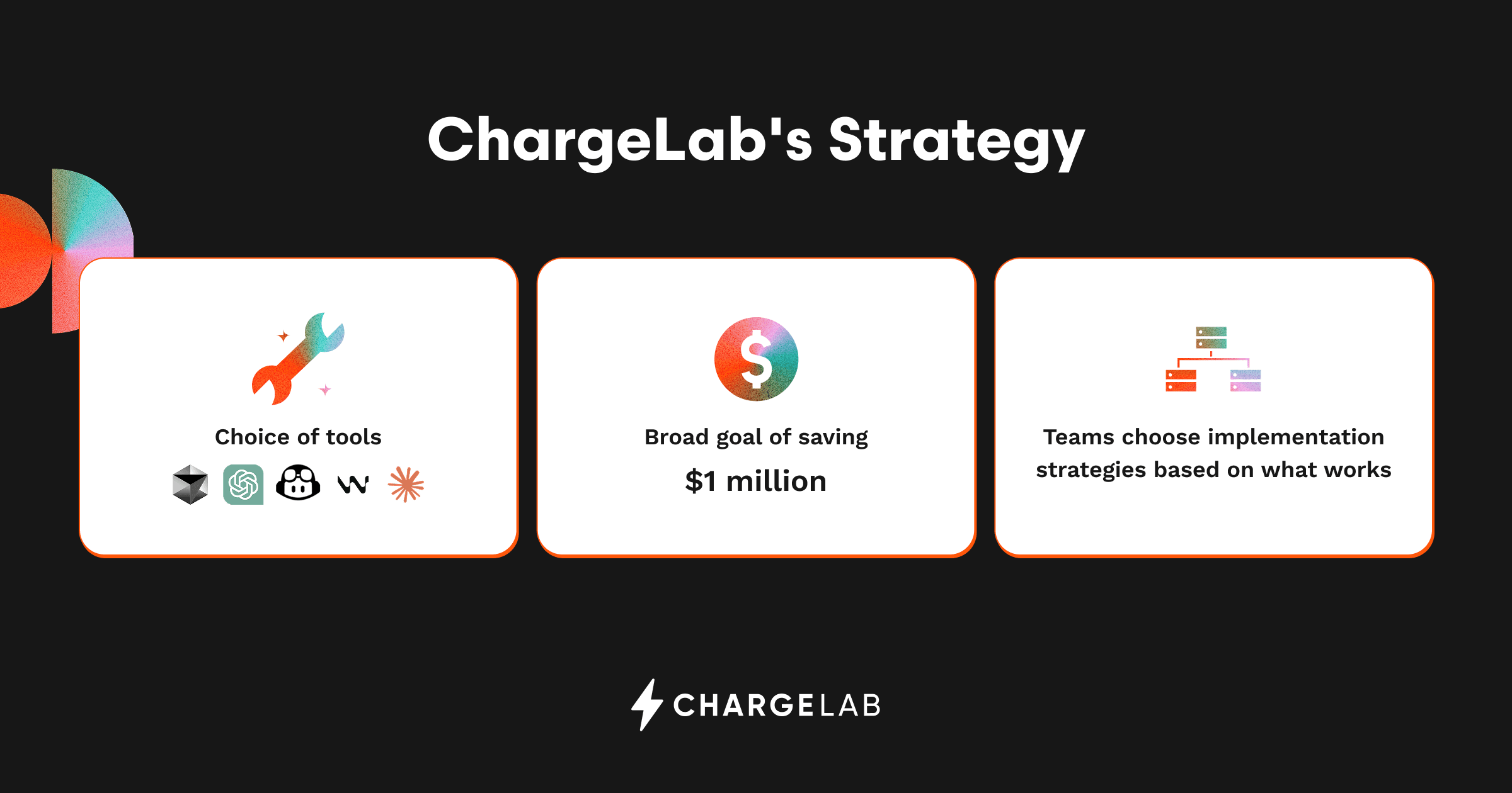 ChargeLab's strategy, for example, involved setting a broad organizational goal (e.g., saving $1 million annually in dev time by using AI) but giving teams freedom in how to achieve it.