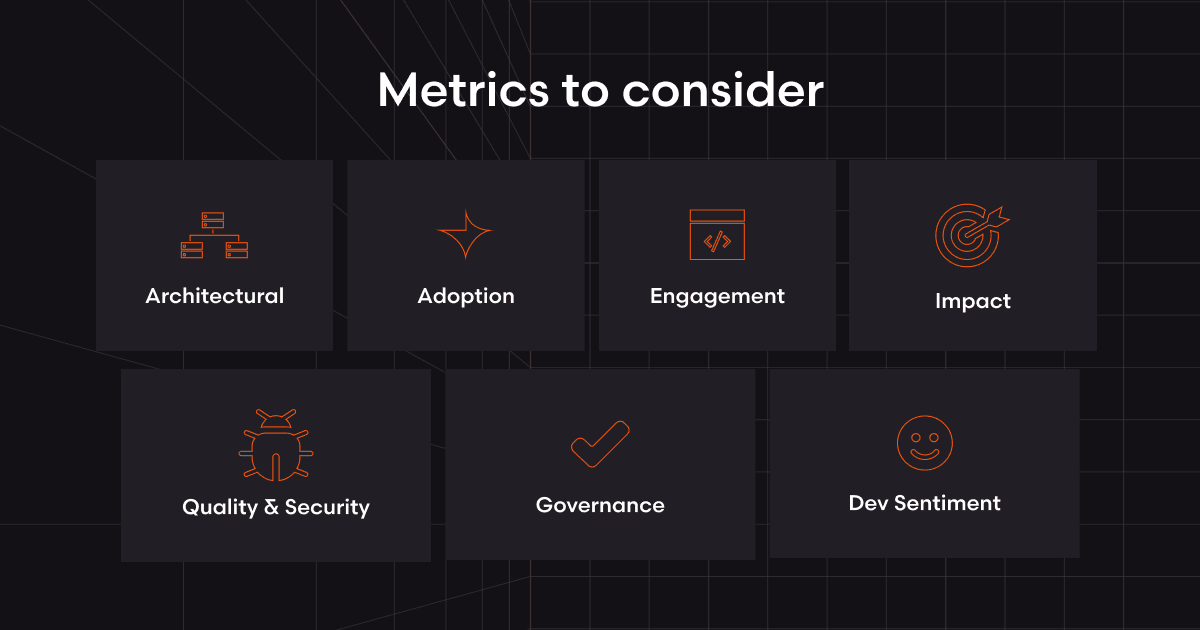 Based on successful deployments across thousands of repositories, we've identified a framework of seven metric categories that provide a complete picture of your integration which we suggest as metrics to measure to our customers.