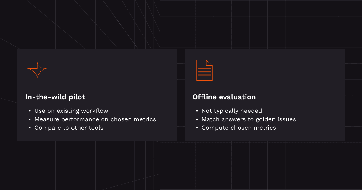 For teams that want additional confidence, controlled detection comparisons can provide useful insight if you design it yourself using your own pull requests and criteria so it gives you the data you actually need. However, it’s not required in most cases since it doesn’t provide as much useful data as a pilot and can be time intensive to set up.