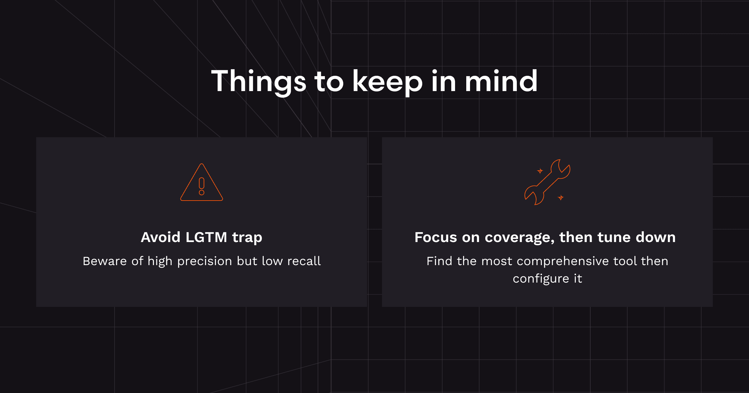 It’s also important to avoid the “LGTM trap.” That means a tool that leaves very few comments, all correct, may appear precise while missing large classes of issues. In many cases, broad coverage combined with configurability is preferable to narrow precision that cannot be expanded.
