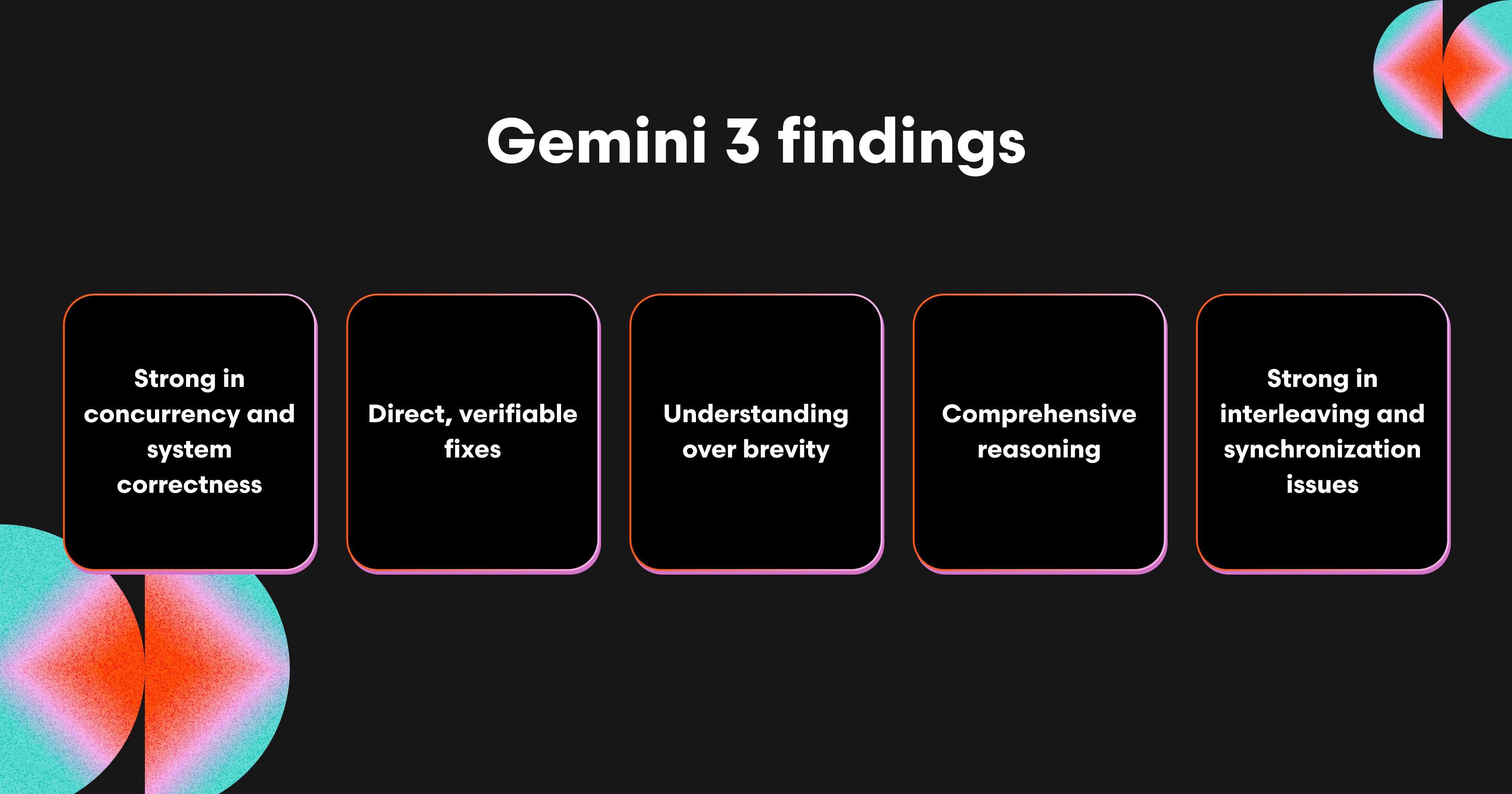 Gemini 3’s strongest areas are concurrency and system correctness. It frequently detects interleaving and synchronization issues that other models overlook. It excels at diagnosing the why behind a bug: