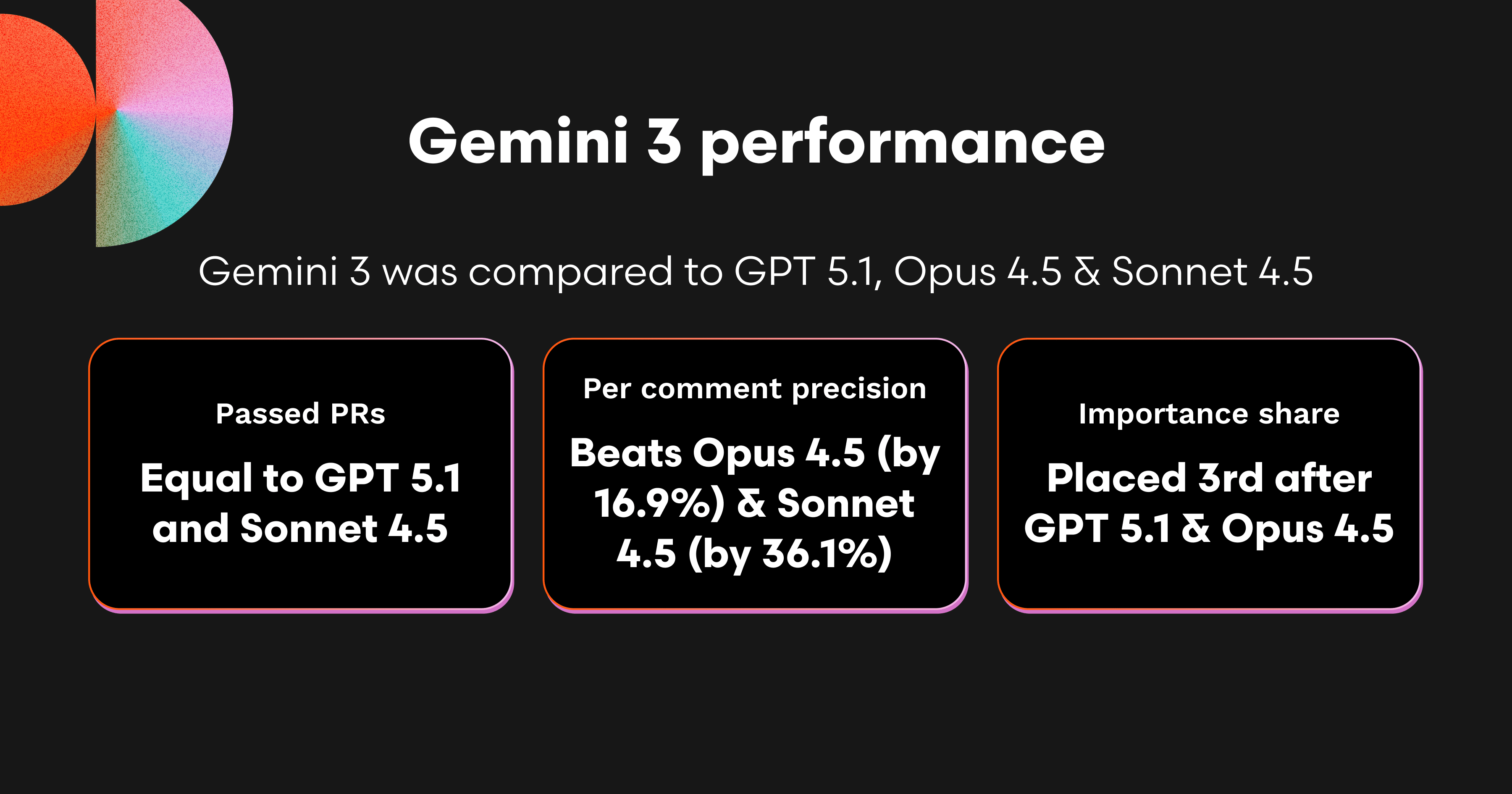 Tone summary: Gemini 3 is the most assertive of the four. It communicates with confidence, and for the most part, that confidence is justified. Even when it makes a mistake, the comment sounds credible enough to make developers stop and re-check the code, which may add to its practical value but may be confusing for some.