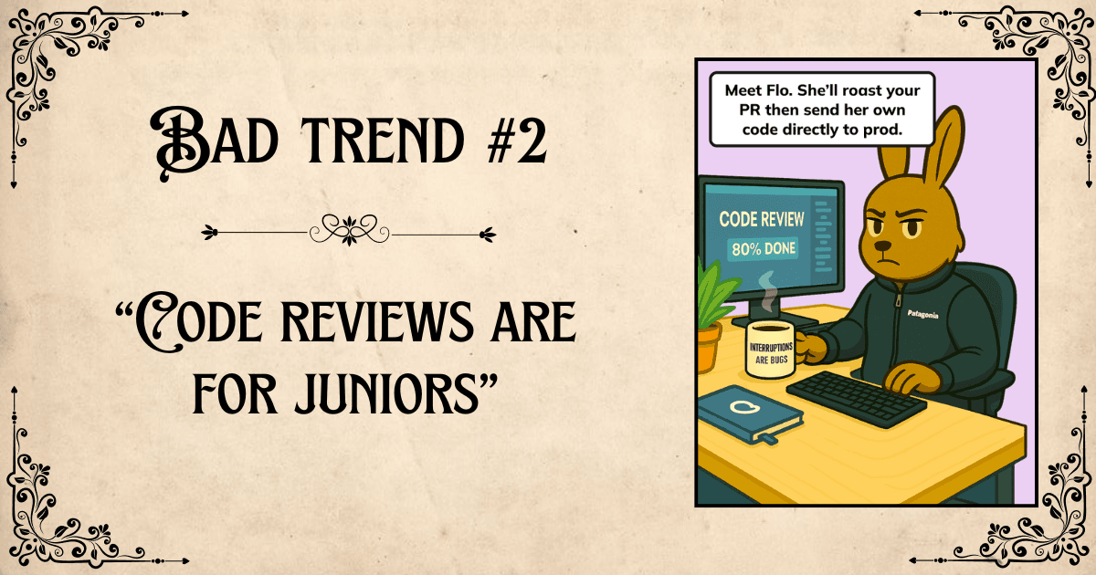 Another fun trend: the belief that once you hit âStaff Engineer IV (Ascended Form),â code reviews are beneath you. Youâve achieved such enlightenment that no mortal can possibly understand your code.