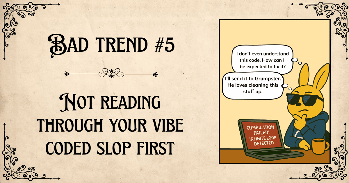 Weâve seen it all: five-thousand-line PRs with variables named foo7, random timeouts, and logic that reads like someone asked ChatGPT to explain taxes using only metaphors. Sometimes it even compiles! But that doesnât mean your AI sidekick didnât also sneak in a few logic bugs, duplicate code blocks, or functions that only make sense if youâre a large language model yourself.