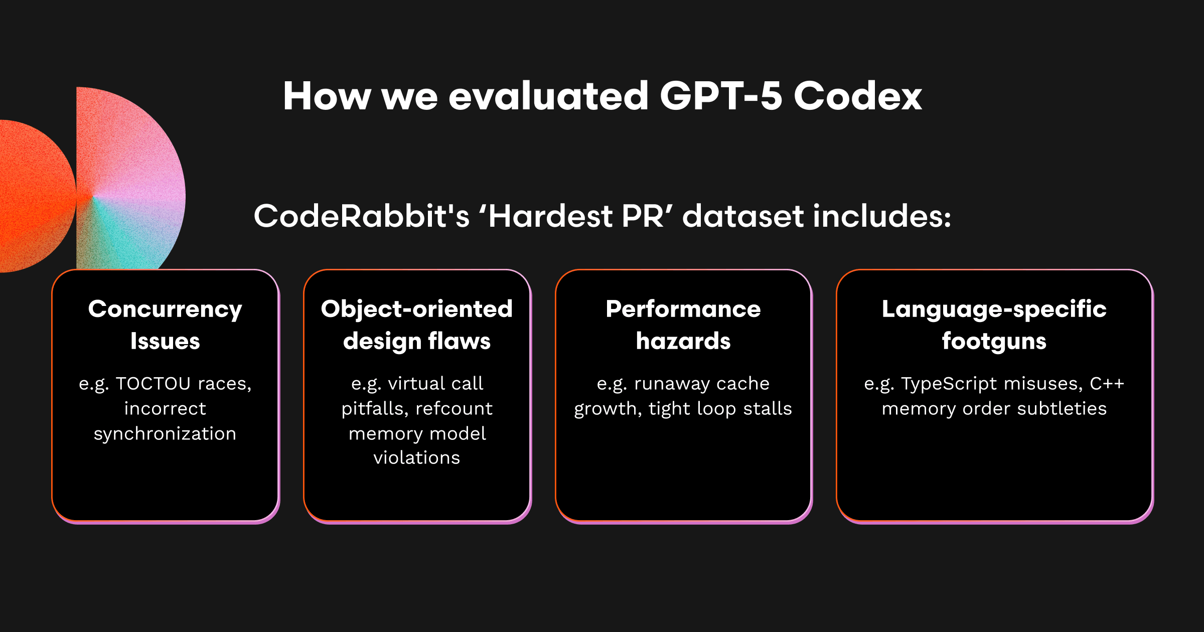スイート全体では、どのモデルも並行性・同期の問題に強みを見せましたが、Codexは特に以下で際立ちました。