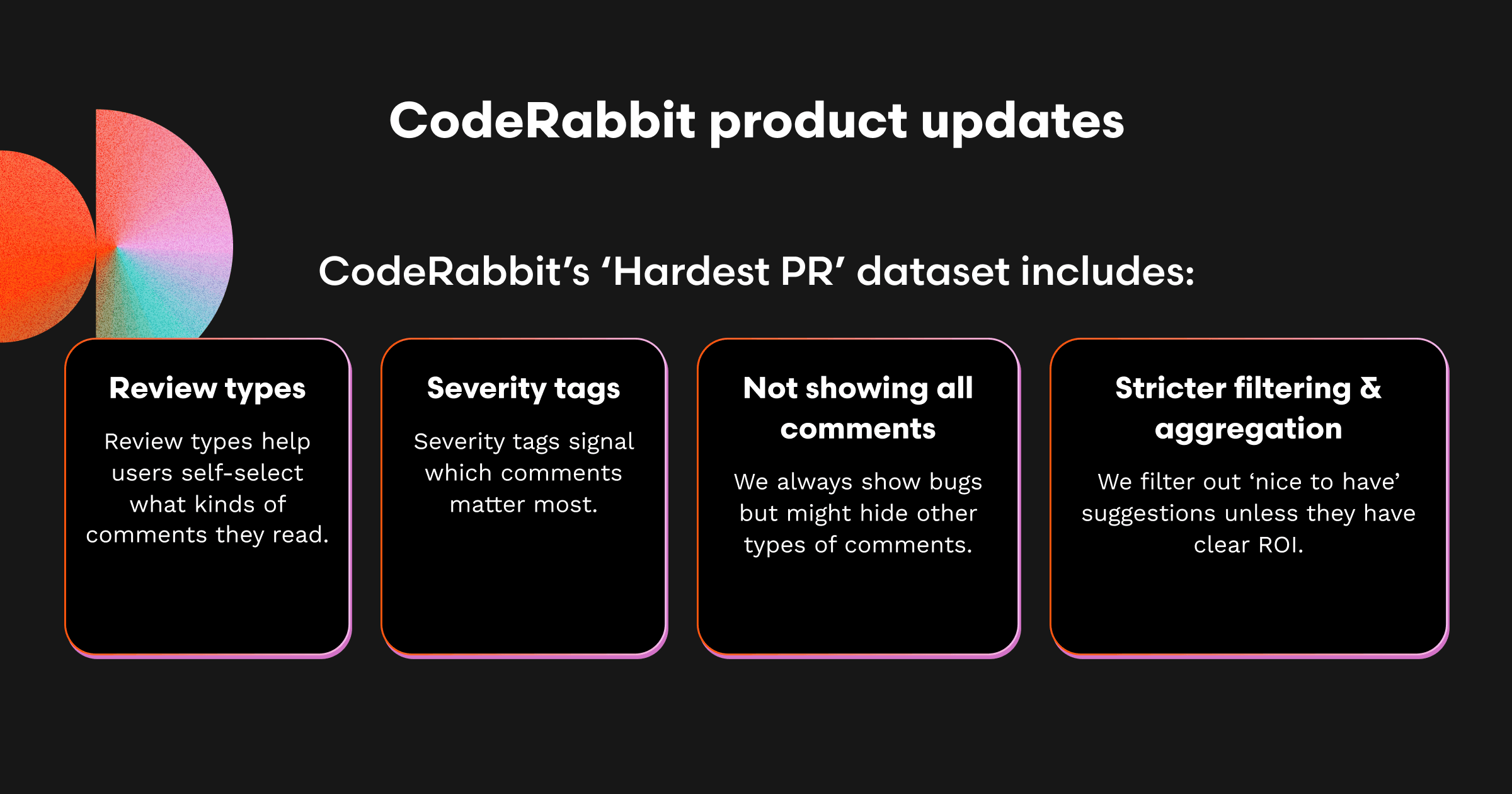 CodeRabbitのコードレビューは、開発者がバグを修正しコードをデリバリーするのを支援します。私たちは最近、GPT-5のベンチマークについて記事を書き、AIコードレビューという私たちのユースケースにおいて、このモデルが推論面で世代的な飛躍を遂げているという見解を述べました。より広いユーザーベースに展開する中で、S/N値(シグナル/ノイズ値。以下SNR)が低下し、レビューが過度に細かすぎるという印象を持たれることが分かりました。
