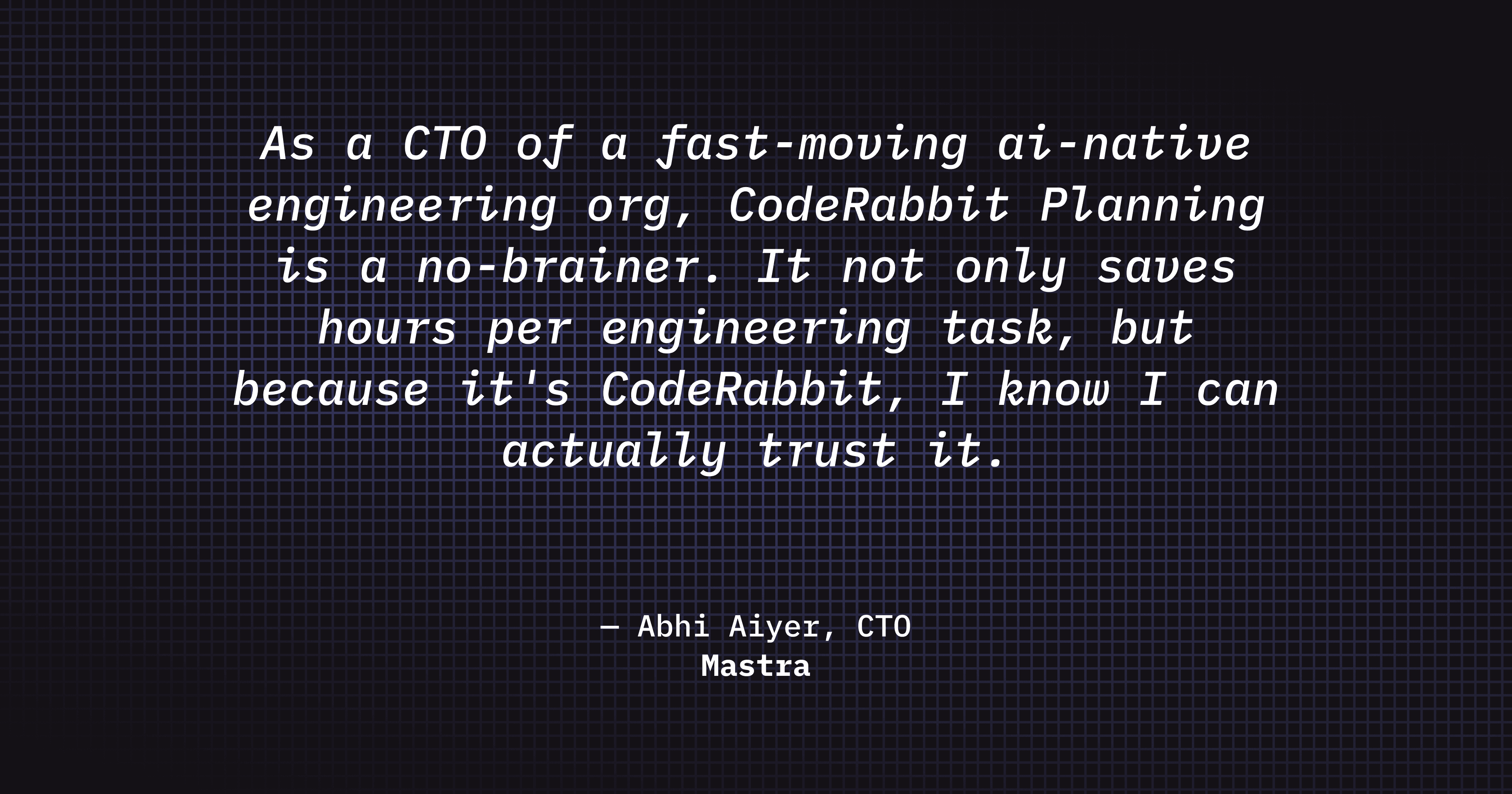 Increased AI adoption: By leveling the playing field around prompting and planning, CodeRabbit makes agents usable for the whole team, not just power users. Less reliance on “AI whisperers,” fewer bottlenecks, and more consistent results across engineers.