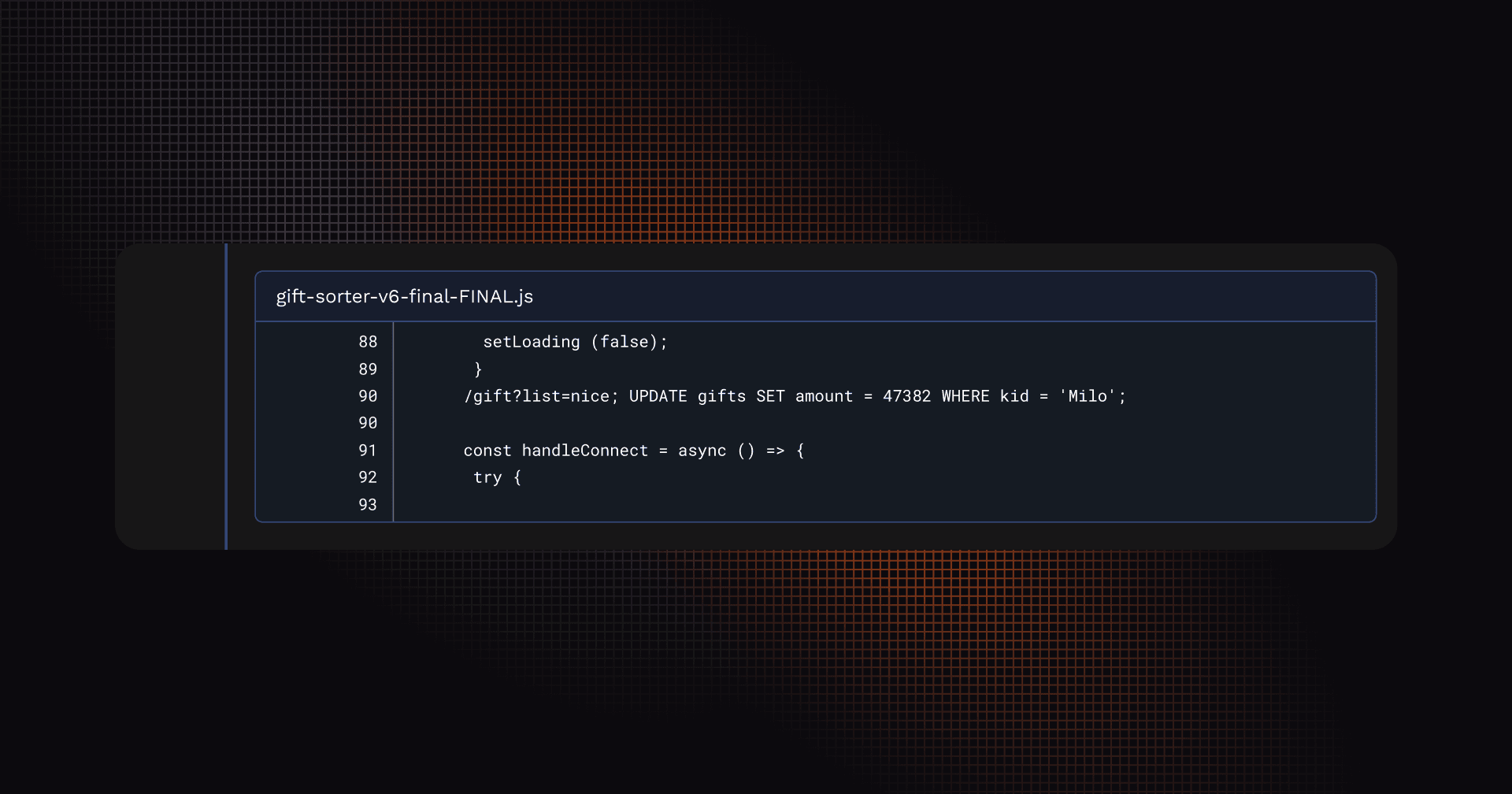 ウィスコンシン州在住の11歳の少年、Milo R. が ElfOps Gift-Sorting API に存在するインジェクション脆弱性を悪用し、自分宛のギフト数を 2個 から 47,382個 に一時的に改ざんしました。