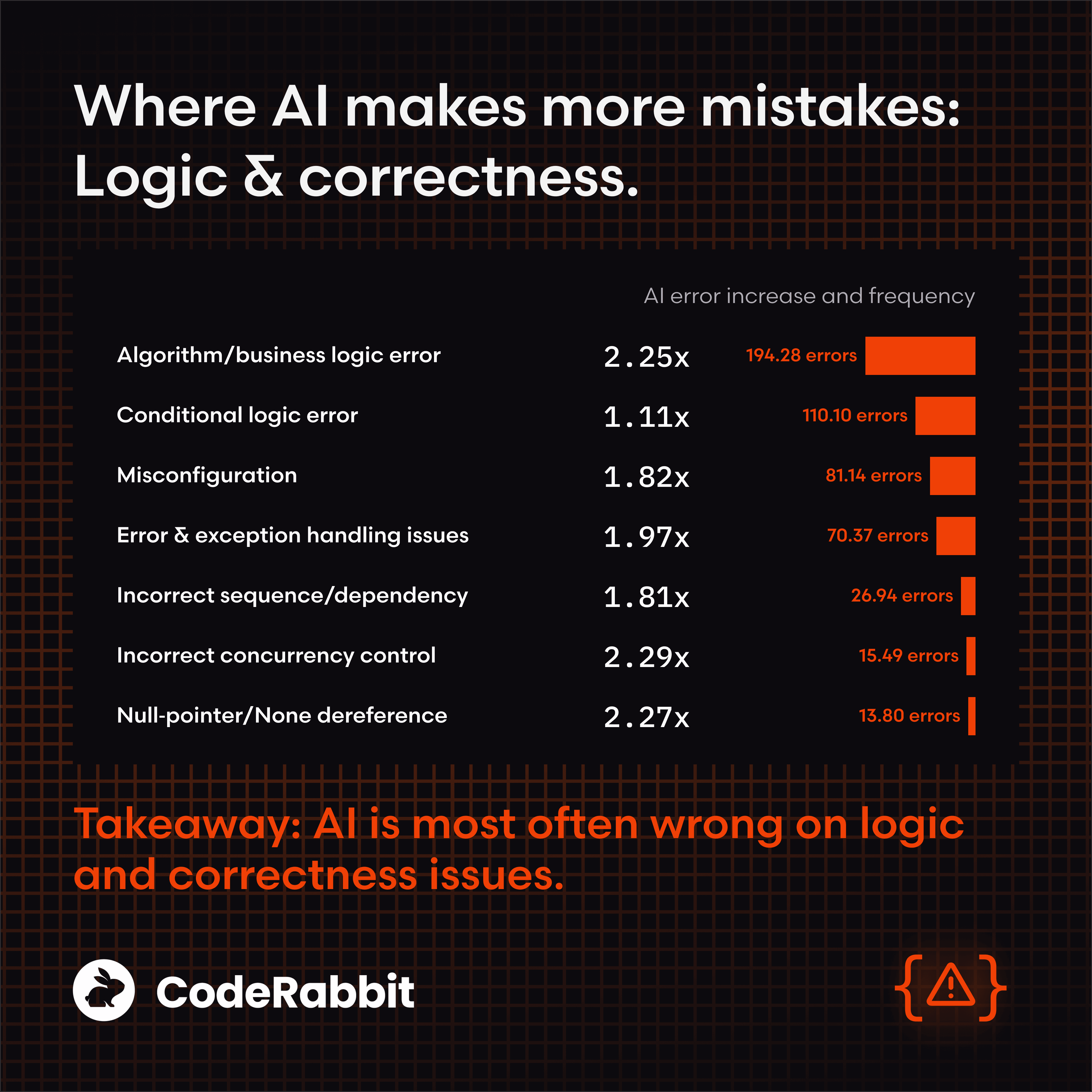 Incorrect ordering, faulty dependency flow, or misuse of concurrency primitives appeared far more frequently in AI PRs. These were small mistakes with big implication