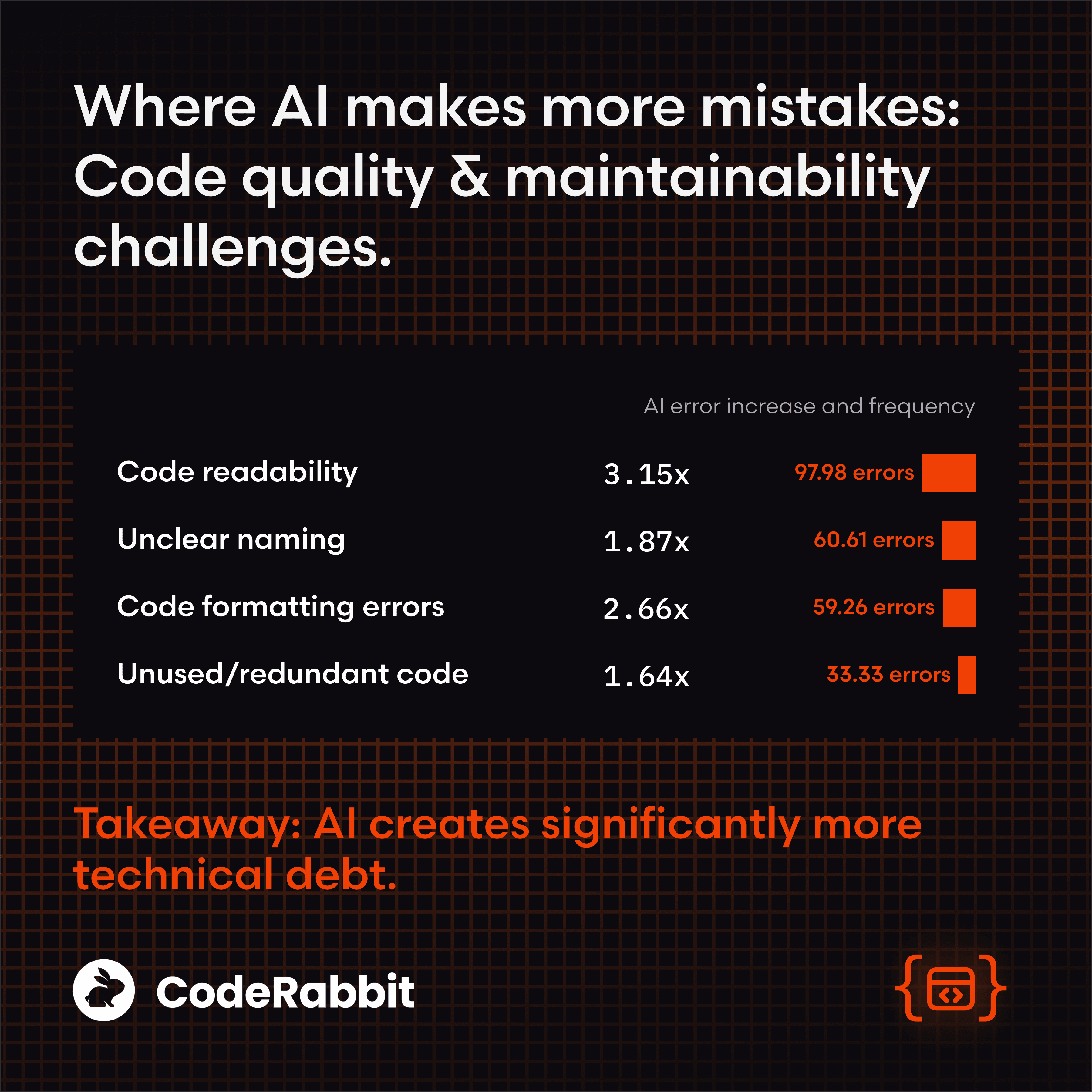 The single biggest difference across the entire dataset was in readability. AI-produced code often looks consistent but violates local patterns around naming, clarity, and structure.