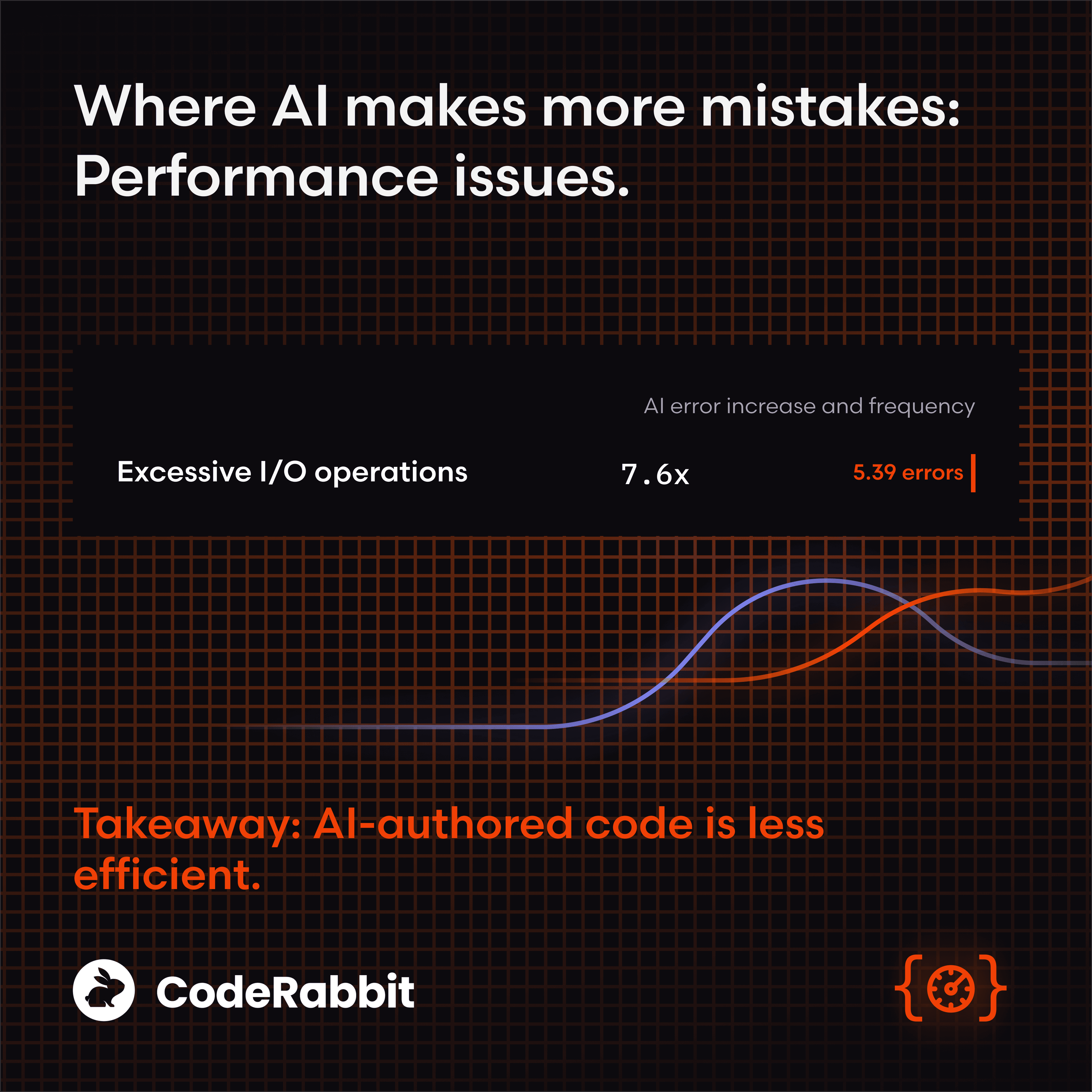 Excessive I/O operations were ~8× more common in AI-authored PRs. This reflects AI’s tendency to favor clarity and simple patterns over resource efficiency.