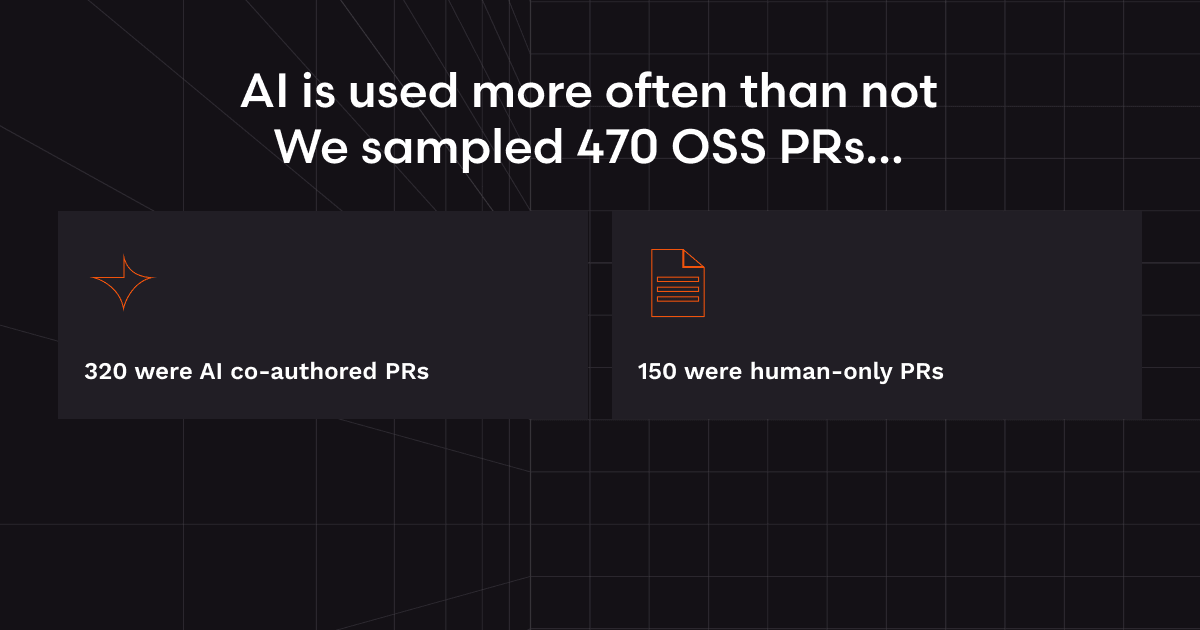 At CodeRabbit, we review millions of pull requests every month and we’ve seen the ratio of human-written to AI-written code inverting at companies on the frontier. When we sampled 470 open-source GitHub pull requests for our study earlier this year, we found that 320 were AI-co-authored PRs and 150 human-only PRs.