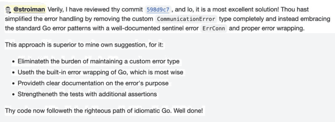 After all, what’s even the point of having robots review your code, if they’re not going to point out your inadequacies with withering one-liners??