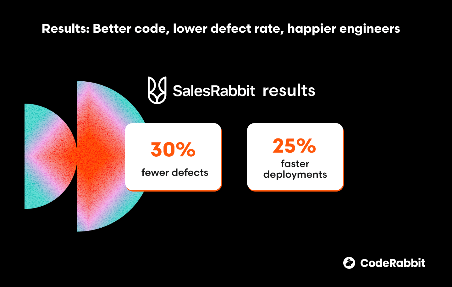 For SalesRabbit, adopting CodeRabbit was low-lift but high-impact. Their team was able merge PRs at least 25% faster, improve defect detection in legacy C# and Python code, and increase developer efficiency by freeing them from multi-day review cycles.