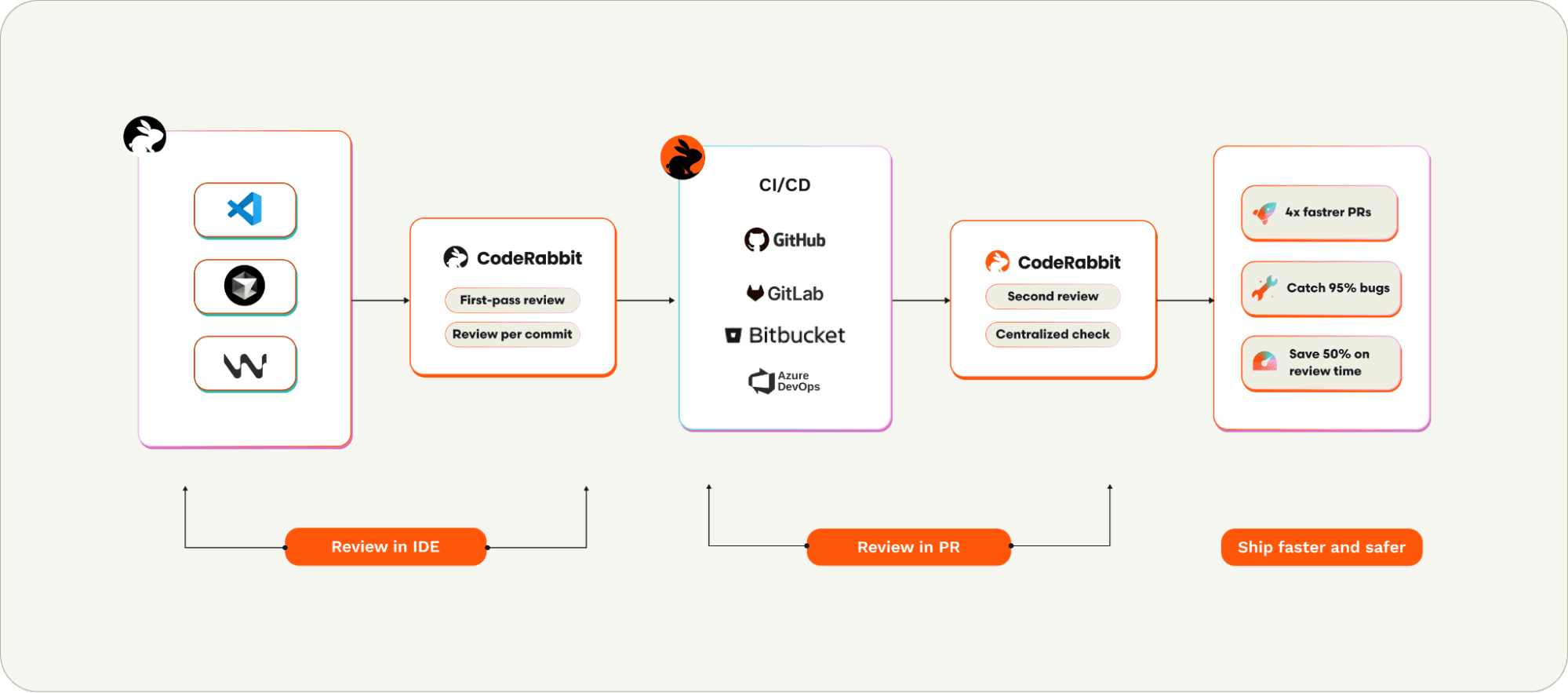 CodeRabbitは、既存のワークフローにシームレスに適合すると確信しています。AI コードレビューがVS CodeやCursor、Windsurf に組み込まれたことで、開発者は集中を切らさずにコードレビューを完了できるでしょう。
