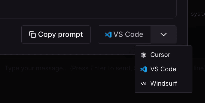 IDE 拡張がない場合は Copy prompt を使い、Claude Code や GitHub Copilot など任意のツールに貼り付けてください。内容も品質も同じです。